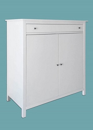 Armadietto milleusi molto capiente e robusto apprezzato per le sue misure particolari e la profondità maggiorata. Perfetto nella camera dei bambini e ragazzi come armadietto per riporre vestiario, ordinare giocattoli e sistemare accessori scuola, sport e tempo libero. Composto da un cassetto centrale e due grandi ante con ripiani interni. Tinta laccato bianco e pomoli metallo.