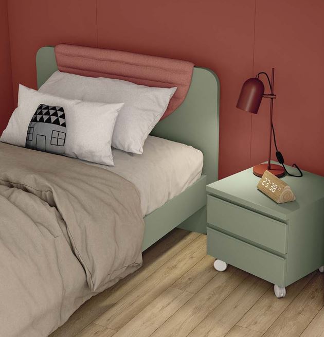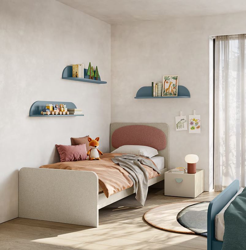Moonie è il nuovo letto per la cameretta e si contraddistingue per i suoi angoli arrotondati e per il suo pad imbottito sulla testiera. Disponibile in varie finiture colore.