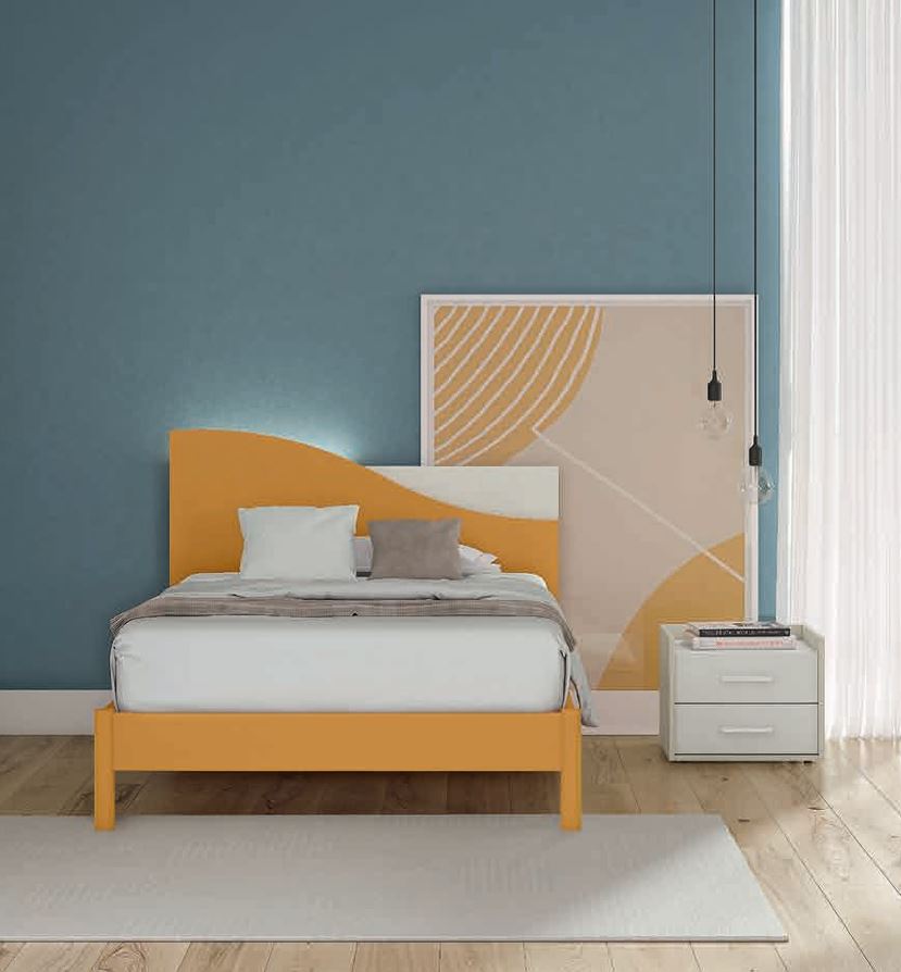 Letto con testiera "Onda". Il letto modello "Onda", offre un una particolare testiera ondulata che rimanda alla forma delle onde del mare. La testiera è formata da due pannelli, quello sagomato in avanti e quello rettangolare dietro, per un bellissimo effetto a contrasto con la scelta di due colori.