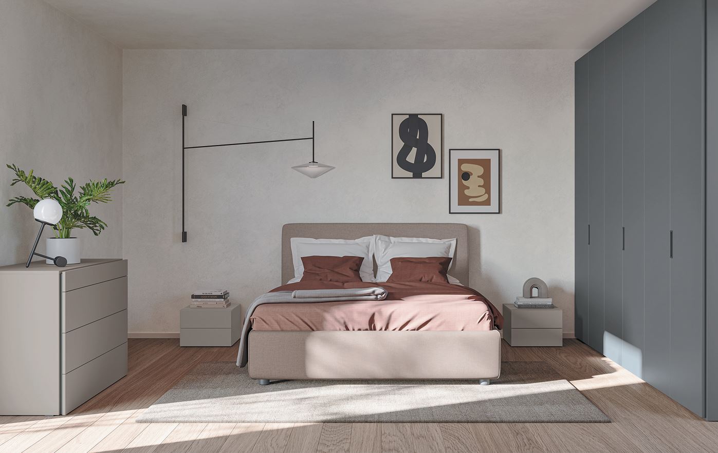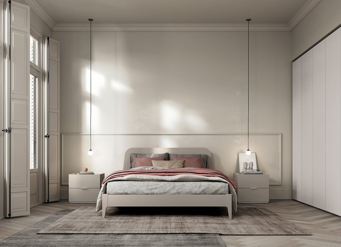 La riscoperta delle tinte tenui dalla superficie liscia ed opaca, sono il modo più sicuro per ottenere una camera da letto dall'atmosfera leggera e risposante. Le nuove finiture colore come Domy, Desert, Canapa, Rovere Dorian e Cipria seguono questa direzione piacevole e rilassante.