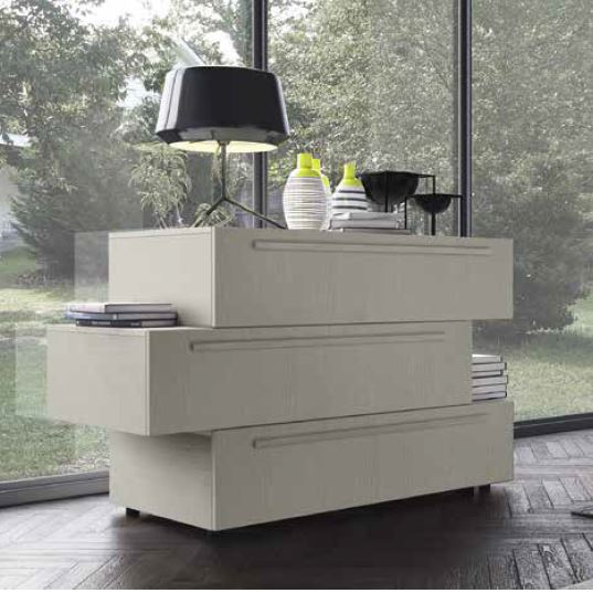 Cassettiera comò disponibile da 2 o 3 cassettoni sfalsati per rendere il mobile comò originale e dinamico sia nella forma e ovviamente anche nelle finiture scegliendo l'effetto legno naturale o il tocco del colore.
