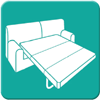 Divano letto modello "Clochard". Divano con rete singola estraibile molto apprezzato per la capacità di creare 2 postazioni letto singolo individuali: la prima si ottiene dal divano stesso togliendo gli schienali sagomati e i due braccioli a cilindro, l'altra si ottiene dall'elemento rete estraibile munito sul lato da una protezione e dotato di rotelline che permettono di separalo a piacimento e in base alle necessità dal divano stesso.